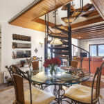 Las escalera de caracol continúa hasta la azotea donde encontramos una terraza con vistas espectaculares, una pequeña cocina de verano y un trastero .